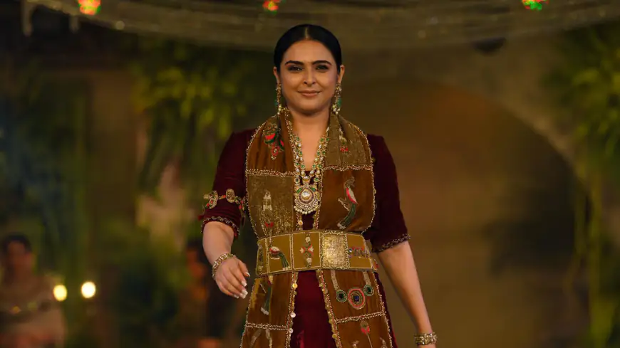 गहरे मैरून वेलवेट के आउटफिट में सजी मधुरिमा का लुक बेहद रॉयल और साथ ही ज़मीन से जुड़ा हुआ लग रहा था। उनके परिधान को खूबसूरत कढ़ाई वाले स्टोल ने और निखार दिया, जिसमें बारीक और नाजुक डिजाइन थे। कमर पर बंधी स्ट्रक्चर्ड बेल्ट ने उनके लुक को परफेक्ट शेप प्रदान की। उनकी ज्वेलरी पारंपरिक थी, लेकिन स्टेटमेंट वाली और पूरी तरह संतुलित, जिसने पूरे लुक को बिना भारीपन के खूबसूरती से पूरा कर दिया। उनका पूरा स्टाइल मजबूत सांस्कृतिक पहचान के साथ शालीनता का सुंदर मिश्रण प्रस्तुत कर रहा था।